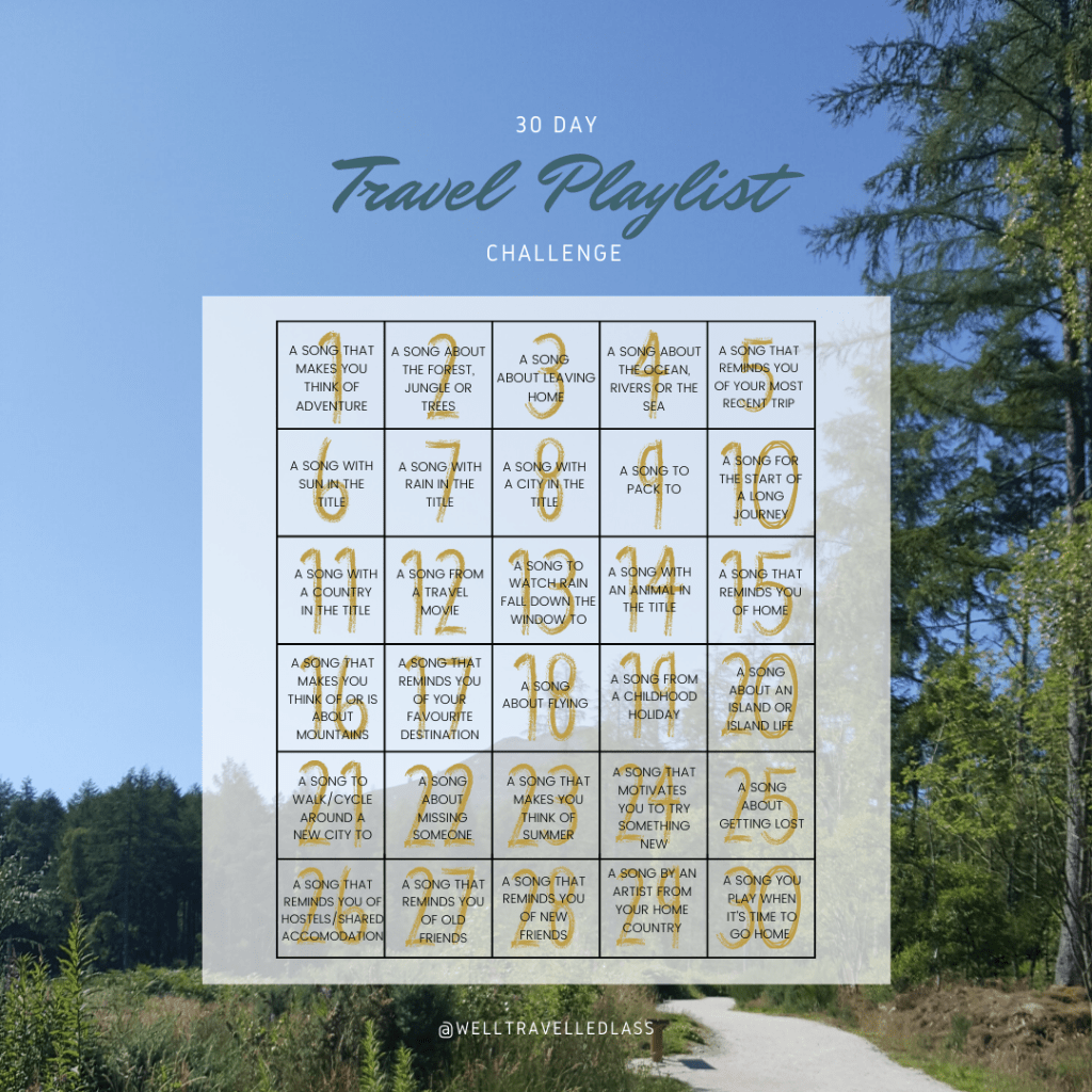 It’s been a long few months and the end doesn’t look like it’s anywhere near, as summer approaches our minds drift to cancelled holidays, music festivals and trips with friends. It was this particular train of thought that led me to create this playlist challenge. We might not be able to physically travel anywhere at the moment but that doesn’t mean we can’t travel in our minds. This playlist challenge was inspired by all the moments I have had while travelling and every memory I have made. I’ve seen a few of these around but I really wanted to create one for my fellow travellers out there who have found themselves with their metaphorical wings suddenly and unexpectedly clipped. If you are a wandering soul like me then this time can feel particularly isolating and claustrophobic. All we can do is remember that the whole world is going through this together and that we can grow from this experience whether we are being “productive” or not. Just by living and surviving through it you are doing something amazing.