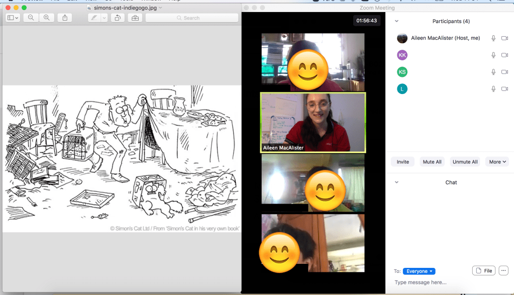 We’ve all played this game on long car journeys or rainy days and it is a great way to revise adjectives. If you aren’t familiar with the game then the rules are pretty easy; each student takes it in turns to describe the teacher’s cat but they must remember every word that has been used before and it is usually listed in alphabetical order starting with A and working all the way to Z. The game begins by leading in with the sentence “The teacher’s cat is a…” and followed by the adjective, then you can just keep going until you run out of letters. Listing the words from A to Z really helps the students to remember the words that have come before them and also means that they might have to get creative with their answers, especially towards the end of the alphabet! This game isn’t just for adjectives, just change the lead in sentence and you can apply it to almost any topic covered in an ESL classroom, for example; “I went on holiday and I packed…” for clothing and accessories, “I went shopping and I bought…” for food, “to get to school I travelled by…” for transport etc. (I recommend writing down the order of the students when you start the game as every time one of their cameras is switched off or a connection drops the order they are on the screen will change…)
